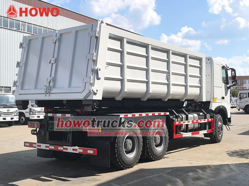 A HOWO 20 tonnás horgos rakodó teherautó egy rendkívül hatékony és megbízható jármű, amelyet városi és elővárosi hulladékkezelésre terveztek. 4325+1350 mm tengelytávval, MC11.44-50 440 lóerős dízelmotorral, 10,518 literes károsanyag-kibocsátással. HW19710 sebességváltóval, 10 előremeneti, 2 hátrameneti fokozattal, összesen 11 darab 12.00R20 gumiabroncsokkal, légkondicionálóval, USB-vel, iránytámogatással, 3 üléssel. A kocsi és az alváz különálló szerkezetet alkalmaz. A jármű hátulján található hidraulikus horgos karos eszközön keresztül gyorsan csatlakoztatható és szállítható a szabványos szemeteskukák, megvalósítva az "egy jármű, több kuka" keringtetési üzemmódot.