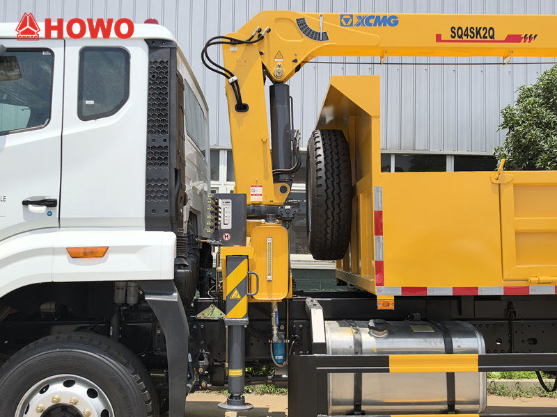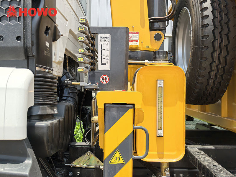 A 4 tonnás daruval ellátott Howo teherautó kivételes teherbírással és szerkezeti szilárdsággal büszkélkedhet, maximális emelőképessége 4 tonna, emelőnyomatéka pedig 10 tonna. Hidraulikus rendszere 25 l/perc áramlási sebességgel, 1271 kg önsúlylal és 360°-os elforgatással rendelkezik, így rugalmasan használható különféle környezetekben, beleértve az építkezéseket és a dokkokat is.