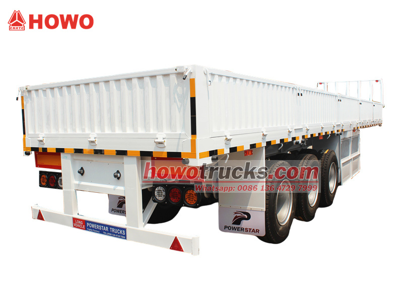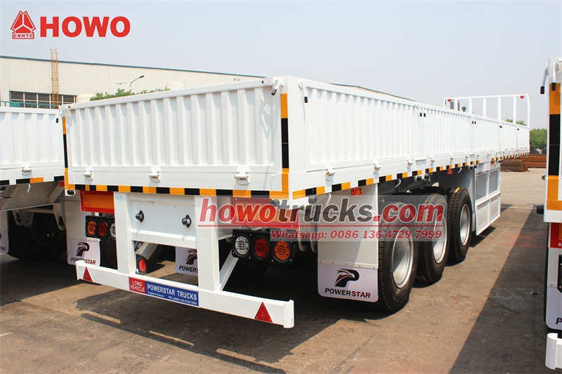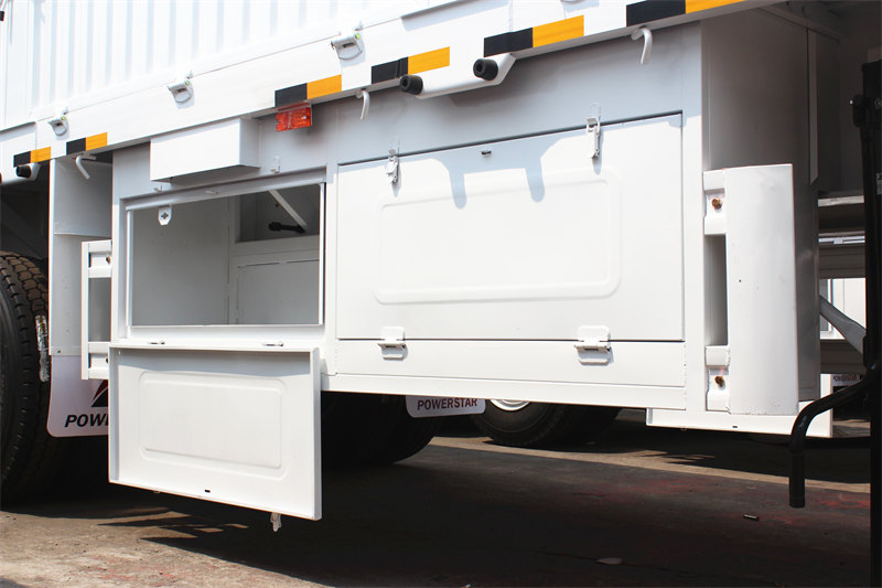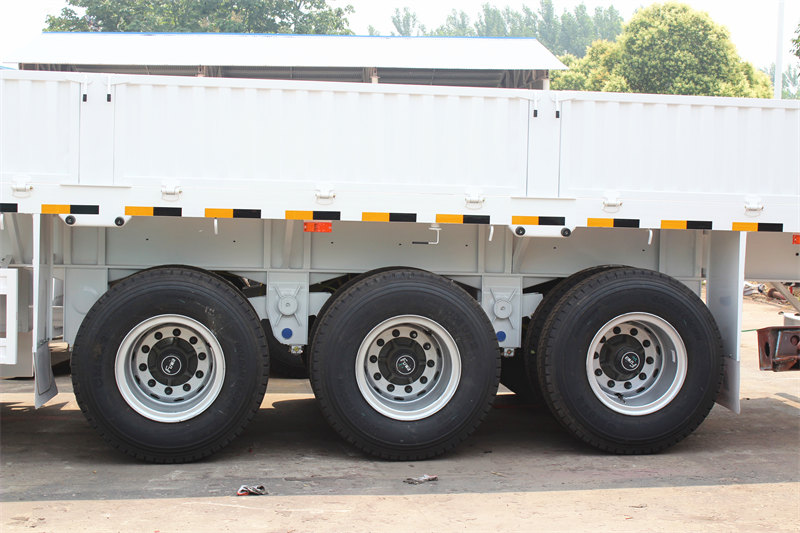 A CS TRUCKS 3 tengelyes, oldalra szerelt teherszállító félpótkocsi névleges teherbírása akár 45 tonna is lehet. Három darab 13 tonnás, nagy teherbírású tengellyel és tizenkét darab 12R22.5 méretű gumiabronccsal van felszerelve, amelyek szilárdságot és kivételes teherbírást biztosítanak. Az oldalra szerelhető kialakítás lehetővé teszi a többirányú gyors be- és kirakodást. A Q345B nagy szilárdságú, hegesztett acél alvázzal és a rugalmas felfüggesztési rendszerrel kombinálva hatékony és praktikus választást kínál közép- és hosszú távú ömlesztett, valamint nehéz teheráru-szállításhoz.