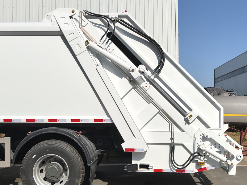 ► Tömörítési elv: A szemétszállítás hatékonyságának javítása érdekében a HOWO szemétszállító teherautók tömörítőberendezést használnak a szemét tömörítésére. A tömörítőberendezés hidraulikus rendszert vagy más nyomásmechanizmust használ a szemét kisebb térfogatúra préselésére, lehetővé téve több szemét tárolását szállítás közben.