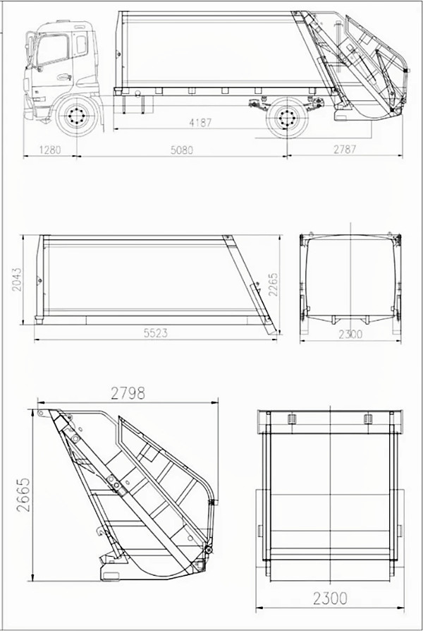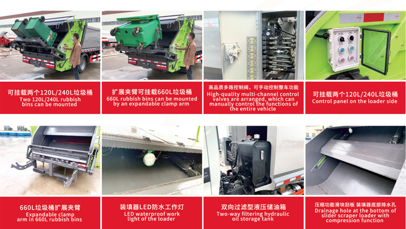 ●Nagy hatékonyságú tömörítés: Hidraulikus rendszert alkalmaz, ami jelentősen növeli a hulladékszállítási kapacitást.