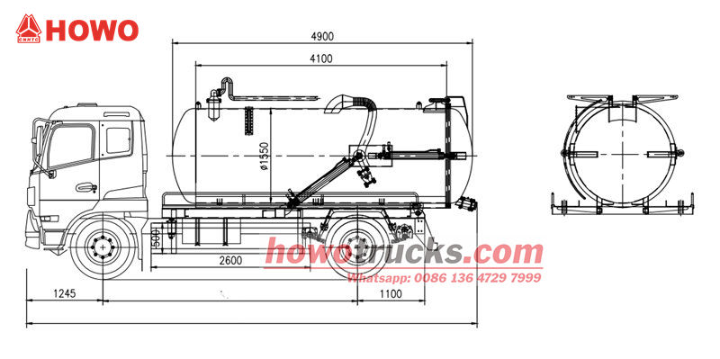 A 300 lóerős Howo szennyvízszívó teherautó Howo 4×2 alvázzal és 4600 mm tengelytávval rendelkezik. Egy 300 lóerős WP10.300E22 dízelmotorral van felszerelve, amelynek lökettérfogata 9,726 liter, amelyhez HW13710 sebességváltó és ZF8198 kormánymű, valamint 7 darabos 295/80R22.5 gumiabroncsok társulnak, amelyek nagy teljesítményt és stabilitást biztosítanak. A tartálytest kiváló minőségű szénacélból készült, így masszív és tartós, és nagy hatékonyságú vákuumszivattyú-rendszerrel van felszerelve, amely önfelszívó, önürítő és önürítő funkciókkal rendelkezik.