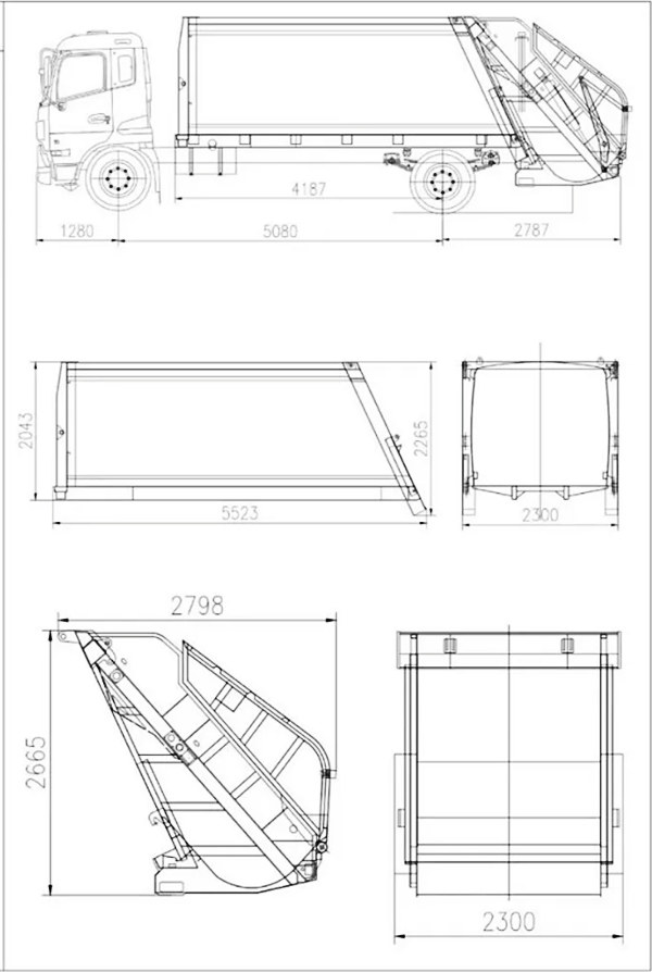 ➤A hátsó automatikus billentőberendezés lehetővé teszi a szemét gyors be- és kirakodását; a kulcsfontosságú alkatrészek ellenőrző nyílásokkal és kenőberendezésekkel vannak felszerelve a könnyű napi karbantartás és a jármű hosszú távú stabil működésének biztosítása érdekében.