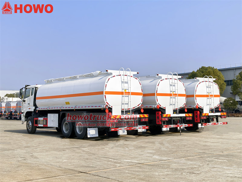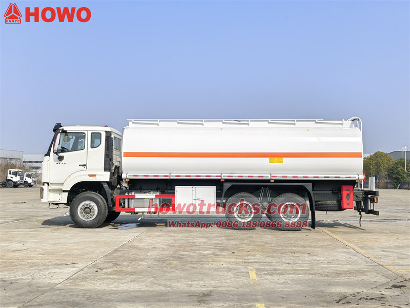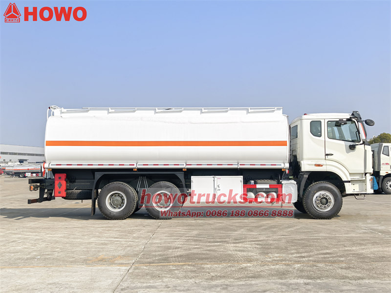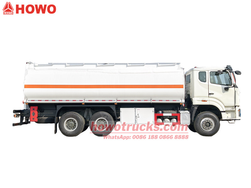 Az olajtartály tényleges térfogata25,000 liter. Védőanyagként Q235 szénacélt használnak. A tartálytest szénacélból készült, amelynek vastagsága legalább5mm. A Howo üzemanyagtartályos teherautó kínai üzemanyaggal van felszerelvehíresmárkájú szivattyúk, szelepek és csövek, valamint egy sor üzemanyag-elosztó. Az olajtartály létrával van felszerelve a könnyű kezelhetőség érdekében, és az igényeknek megfelelően több rekeszre is tervezhető.