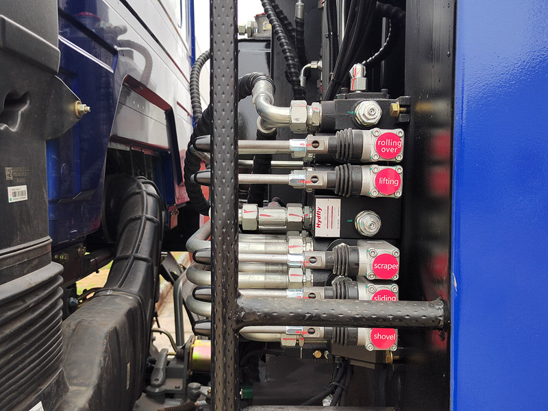 ♦A hátsó ajtót egy hidraulikus henger nyitja, biztosítva a sima és maradványmentes hulladékürítést.