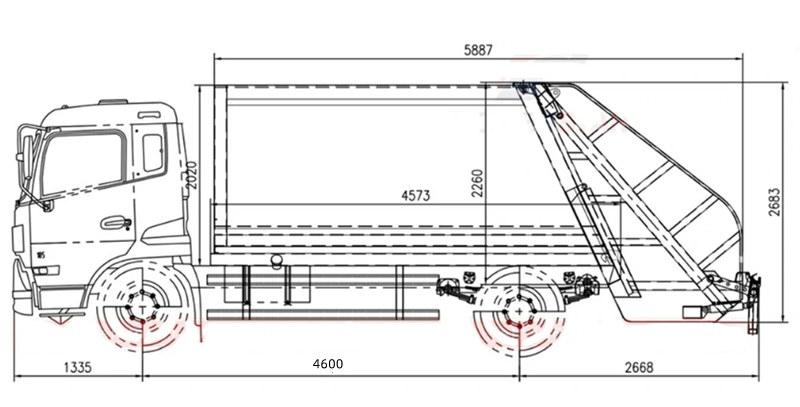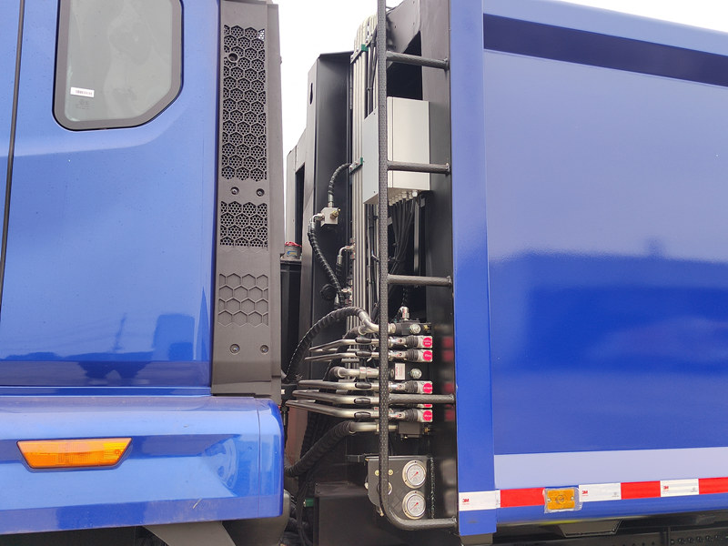 ● Nagy hatékonyságú tömörítés: Hidraulikus nyomórendszert alkalmaz, ami jelentősen növeli a hulladékszállítási kapacitást.