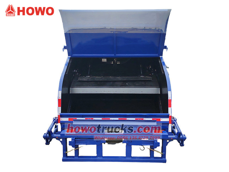A szemeteskuka nagy szilárdságú, időjárásálló acéllemezből készült, az oldalsó panelek egy darabból készültek. A rekesz kiváló tömítőképességgel rendelkezik, megakadályozza a szennyvíz szivárgását és a szagok terjedését, így környezetbarát és hatékony. Howo hátsó tömörítő szemeteskocsi Alkalmas a háztartási hulladék központosított gyűjtésére és elszállítására városokban, lakóövezetekben, gyárakban és egyéb helyszíneken. Könnyen kezelhető, biztonságos és megbízható.