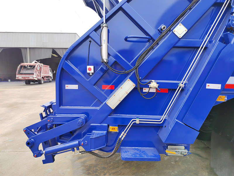 ♦Amikor a jármű megérkezik a hulladékkezelő telepre, a hidraulikus rendszer megfordítja a működését, és a tolókarral kilöki az összenyomott hulladékot a teherautó platójáról.