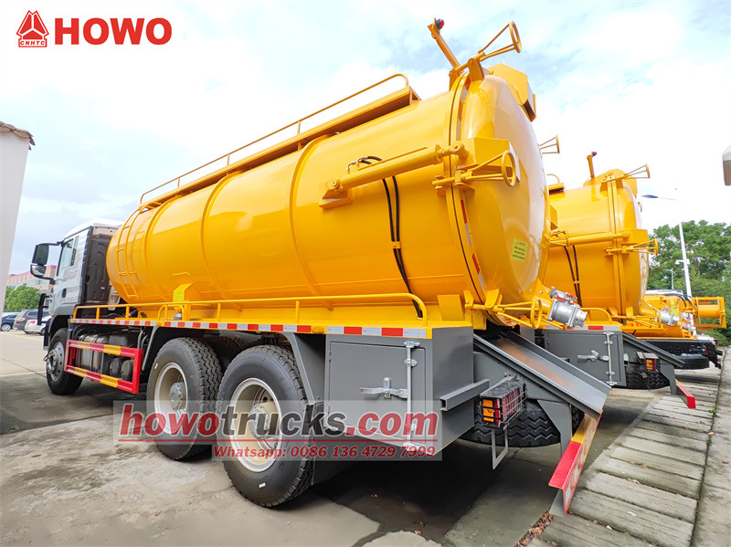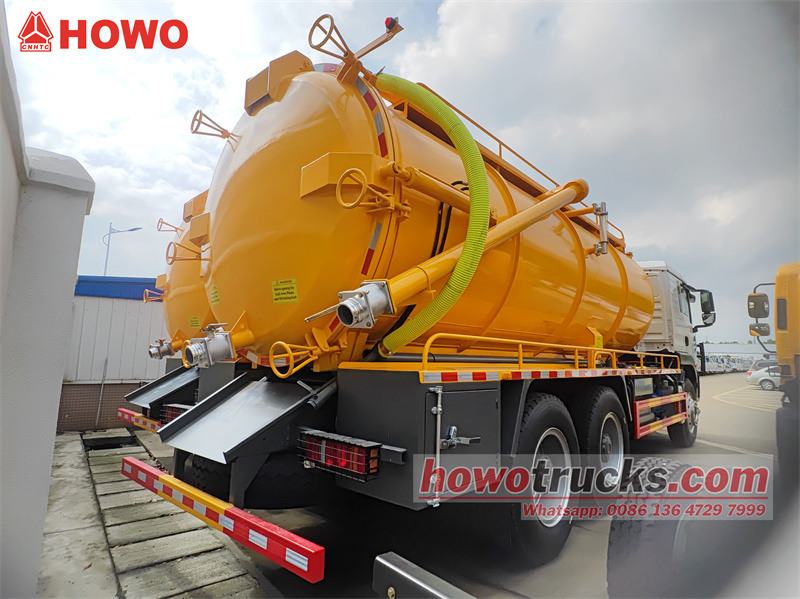 A HOWO 6x4 20 köbméteres szennyvízszívó teherautó a HOWO TX430 alvázra épül, 4600+1350 mm tengelytávval, Weichai WP12S430E201 motorral és Sinotruk HW19710 sebességváltóval felszerelve. A felső rész egy 20 köbméteres, 5 mm vastagságú szénacélból készült szennyvíztartály. A jármű egy 20 m3 kapacitású 2BEA-204 vízkeringető vákuumszivattyúval van felszerelve.³/perc, egy nézőüveg, egy másodlagos szűrő, egy ürítőszelep, egy szennyvízcső, egy létra, egy szerszámosláda, egy vákuumnyomásmérő, egy bal oldali vezérlőszelep, egy vezérlőszelep a csomagtérajtó nyitásához és zárásához, valamint egy tartályemelő.