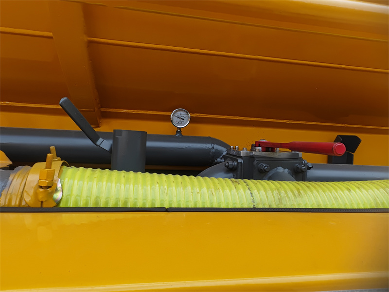 Leeresztő szelep: A tartály hátsó ajtójának leeresztő nyílása könnyen kezelhető és jó tömítést biztosít, amelyet szennyvízürítési műveletekhez használnak.