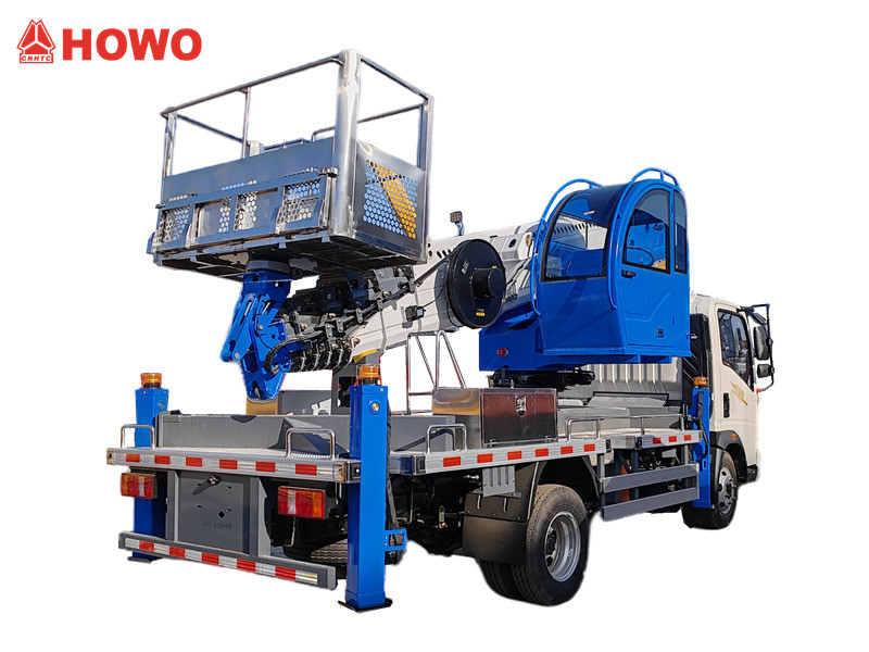 A HOWO 28 méteres munkaállvány egy HOWO 4×2 könnyűszerkezetes alvázra épül, amelyet egy 110 lóerős Yunnei dízelmotor hajt, kiváló mobilitást biztosítva. Öt részből álló szinkronizált teleszkópos gémje maximálisan 28 méteres munkamagasságot ér el, amelyet négy V alakú hidraulikus kitámasztókar támaszt alá a fokozott stabilitás érdekében. A 360°-ban forgatható emelvény teherbírása 200 kg, és három üzemmódot támogat: vezeték nélküli távirányítás, emelvényvezérlés és földi vezérlés, valamint vészhelyzeti biztonsági eszközök. Széles körben használják kommunális, energiaellátási és egyéb nagy magasságú műveletekben, biztosítva a biztonságot és a hatékonyságot.