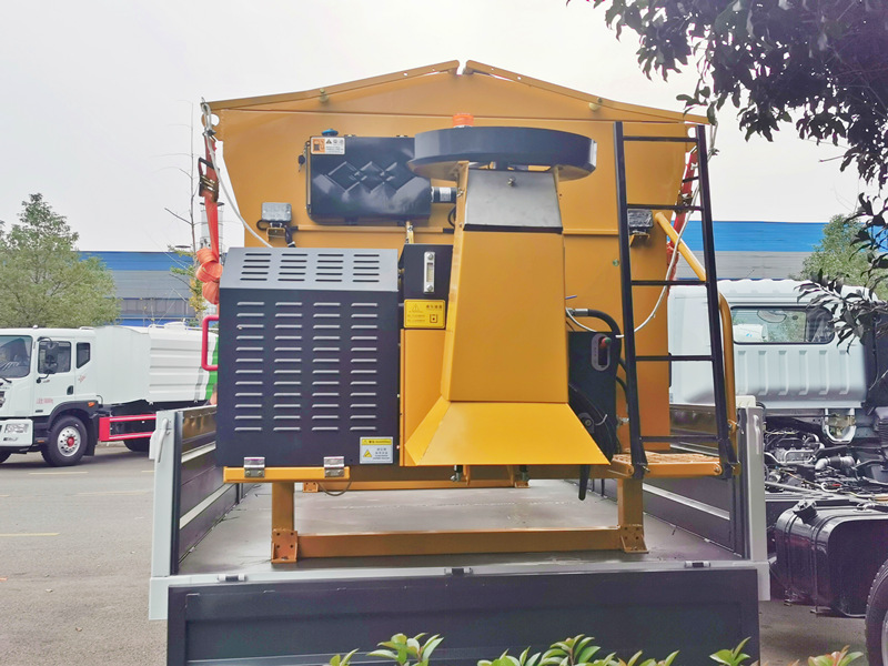 4CBM hóolvasztó szer szórógép CS-SJ4000 telepítve a teljes platós raktér, Teljes kapacitás 4000L, kiváló minőségű Q235 rozsdamentes acélból készült, láncos rendszerrel összehangolt motor a hatékony munkavégzés érdekében, a rendelkezésre álló szórási szélesség 2-10 m, a sószóró kapacitása pedig 20-150 g/m2, teljesen állítható típus. A szórólap átmérője 550 mm, a munkasebesség 5-20 km/h, a kabinban német PLC vezérlésű modell a biztonságos munkavégzés érdekében.