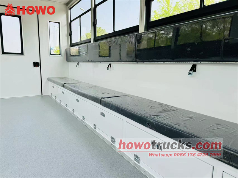 4200A katonai szállítás és a sürgősségi támogatás területén egy kiváló teljesítményű és nagy alkalmazkodóképességű csapatszállító kulcsfontosságú a küldetés zökkenőmentes végrehajtásához. A Howo 4x4-es katona csapatszállító teherautó Egy ilyen erőteljes berendezés. Rendkívül nagy alkalmazkodóképességgel rendelkezik, és az összkerékhajtási rendszeréhez egy masszív alváz társul, amely könnyedén kezeli az összetett útviszonyokat, például a nehéz hegyi utakat és a sáros mocsarakat. A Weichai motor erőteljes és tökéletesen illeszkedik a kiváló minőségű sebességváltóhoz a hatékony szállítás érdekében. Kényelmes és tágas, két sor ergonomikus üléspaddal és légkondicionálóval. Biztonságos és megbízható, a többablakos kialakítás széles látómezőt biztosít, valamint nagy szilárdságú karosszériával, amely ellenáll a nyomásnak és az ütéseknek. Nagyon kényelmes, a jobb oldalon egyetlen ajtóval és a csomagtérajtón dupla ajtóval, amely lehetővé teszi a személyzet számára a gyors be- és kiszállást a járműből, és vészhelyzet esetén a gyors összeszerelést.
