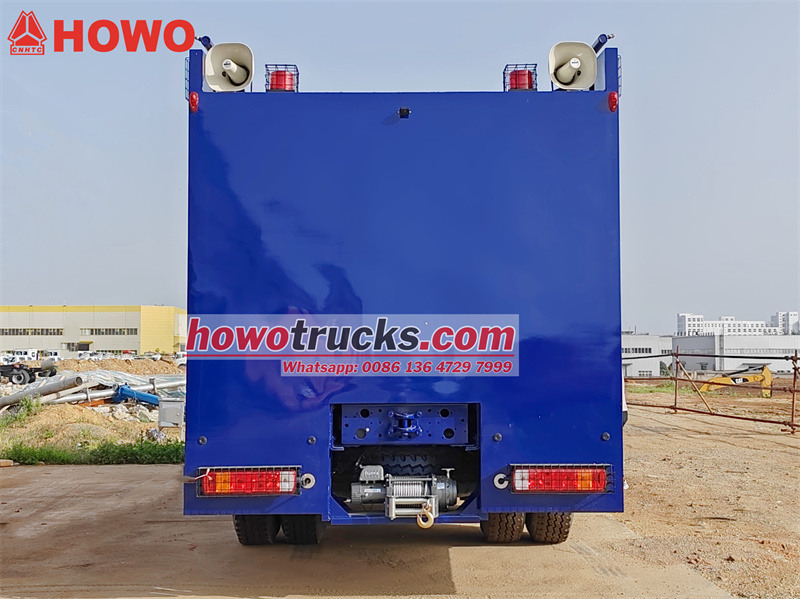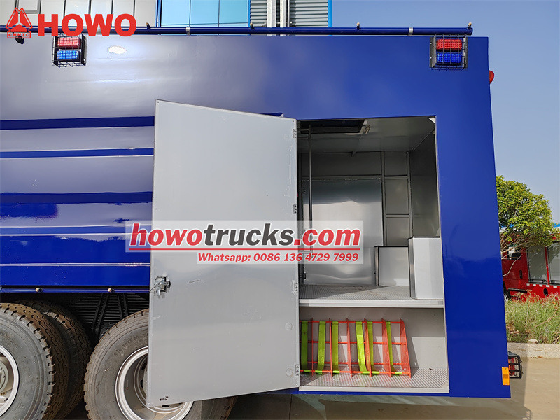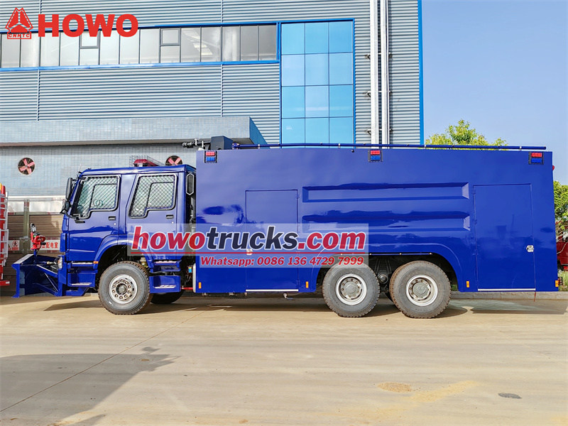 A Howo tűzoltóvízágyú rohamkocsi nagy teherbírású Sinotruk alvázat, 6x4-es hajtásláncot és 400 lóerős WP12S400E201 motort használ, amely biztosítja a nagy mobilitást vészhelyzeti műveletek során. teherautó A karosszéria átfogó robbanásbiztos kialakítással rendelkezik az anyagok, a szerkezet és a rendszerek tekintetében, biztosítva a biztonságos és hatékony küldetésvégrehajtást extrém környezetekben. A vezetőknek rendelkezniük kell mind speciális vezetési készségekkel, mind vészhelyzet-reagálási képességekkel, különös tekintettel a megelőző biztonsági intézkedésekre és a távoli együttműködésen alapuló műveletekre.