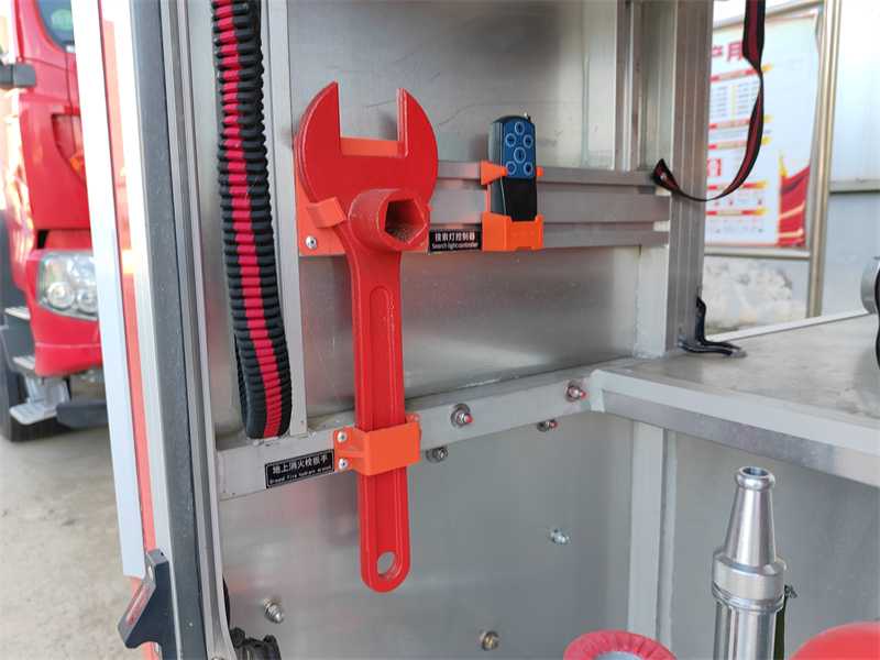3. Alsó szerelvénydoboz: A tartály alatt található, így kiváló helykihasználást biztosít. Alumíniumötvözetből készült gördülőajtóval rendelkezik, amely könnyen nyitható, vízálló és porálló. Különböző tűzoltó berendezéseket tartalmaz: