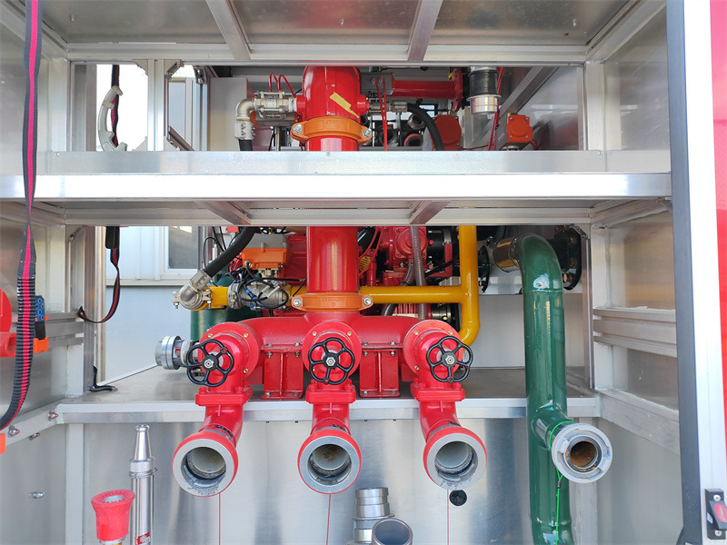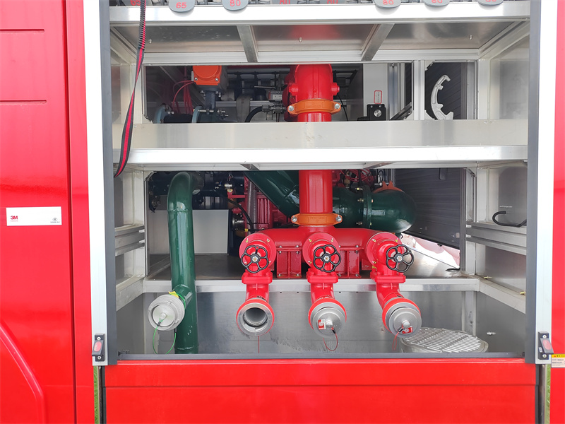 ● A jármű vízelosztóval és vízgyűjtővel is fel van szerelve, ami lehetővé teszi a vízforrások rugalmas váltását és a többcsatornás vízellátást, javítva a fenntartható tűzoltási képességeket és alkalmazkodva az összetett tűzesetek igényeihez.