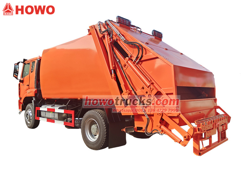 A Howo szemétpréselő teherautó Fast 10 előremeneti és 2 hátrameneti fokozattal rendelkezik. A masszív vázzal és a rugalmas kormányzással kombinálva stabil és hatékony működést biztosít bonyolult útviszonyok között. A 15 CBMA 4 mm vastag Q235 speciális acélból készült ívelt tartály egy darabból készült öntési eljárással készült, ami 1:3,4-es tömörítési arányt eredményez, biztosítva a maximális hulladéktömörítési hatékonyságot. A teljesen automatikus hidraulikus vezérlőrendszer 40-45 másodpercre csökkenti a be- és kirakodási ciklusokat. PLC intelligens vezérlőrendszerrel felszerelve, könnyen és gyorsan kezelhető. Kézi üzemmódban a kezelő a kezelőkar és az elektromos vezérlőgombok segítségével végezheti el a hulladéktároló rekeszének tömörítését, kirakodását és egyéb műveleteit.