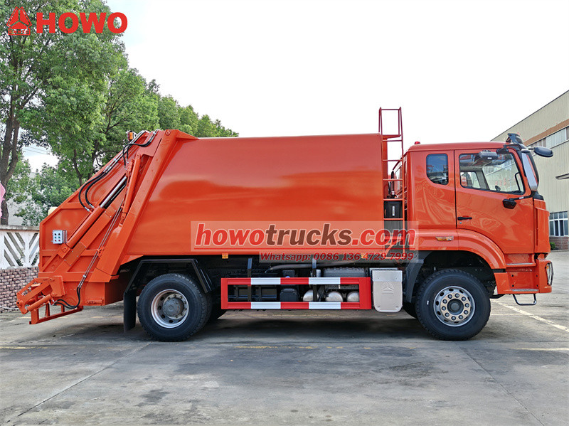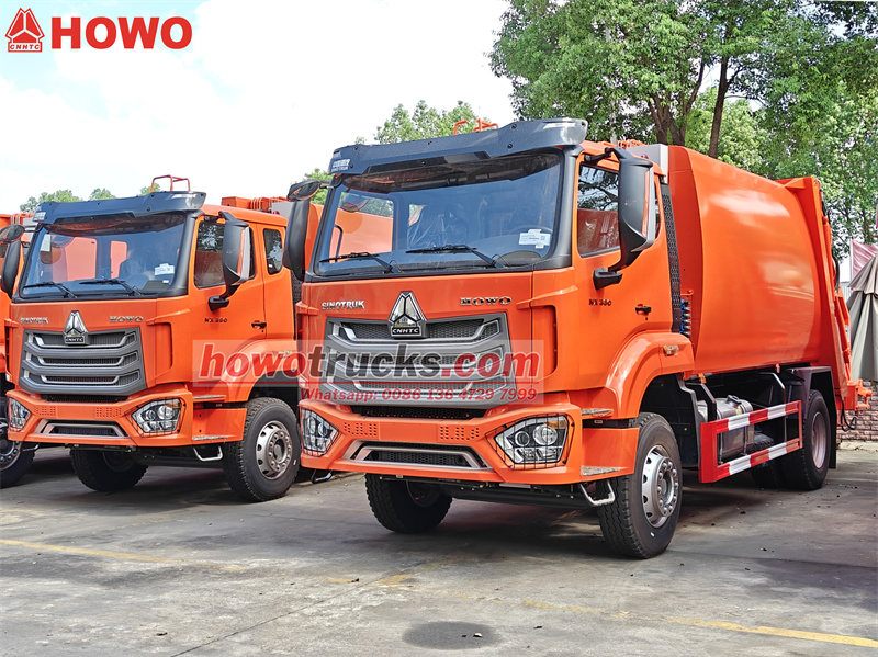 HOWO 15 köbcentis hátulról rakodható hulladékprés teherautók készen állnak a közel-keleti országba történő szállításra