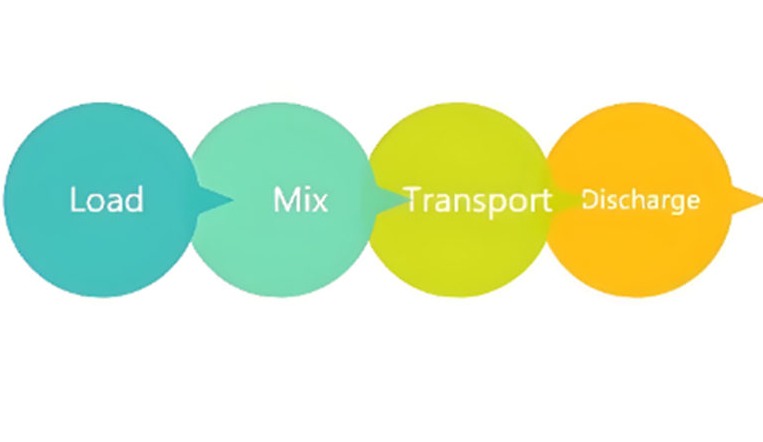 ▶ Terhelés: A teherautót megrakják a szükséges anyagokkal, beleértve a cementet, a vizet és az adalékanyagokat, például a homokot vagy a kavicsot. Az anyagokat a hordó tetején található nyíláson keresztül töltik a hordóba.