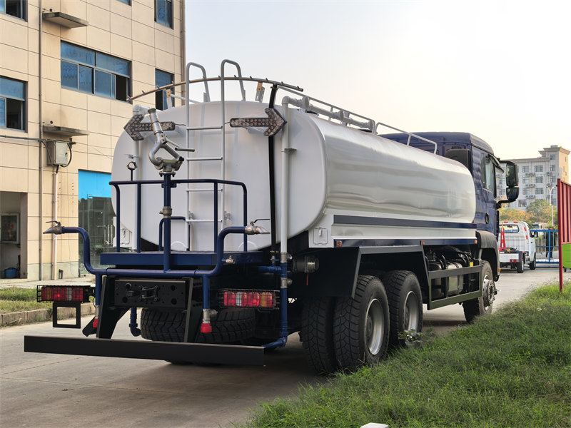 stainless steel tank, 6×6, RHD is optionalA HOWO TX 18000L vízpermetező teherautó egy nagy kapacitású, többfunkciós szaniter jármű, amely a HOWO TX nagy teherbírású alvázára épült, 18 000 literes víztartállyal. Egy Weichai 380 lóerős dízelmotor és egy 10 sebességes kézi sebességváltó hajtja, amely robusztus teljesítményt és nagy teherbírást biztosít. A tartály 5 mm-es szénacélból készült és korróziógátló réteggel van bevonva, míg belső szerkezete négy rekeszt és túlfeszültség-gátló terelőlapokat tartalmaz a vezetési stabilitás fokozása érdekében. A jármű egy Weilong centrifugális szivattyúrendszert integrál, amely támogatja az önfelszívó vízelvezetést és a 60 m³/h áramlási sebességű működést. Több üzemmódú permetezőrendszerrel is rendelkezik, beleértve az első öblítést, a hátsó öntözést, az oldalsó permetezést és a 28 méteres hatótávolságú nagynyomású vízágyút, így alkalmassá teszi különféle alkalmazásokhoz, például városi zöldítéshez, pormentesítéshez, hűtéshez és vészhelyzeti tűzoltáshoz.