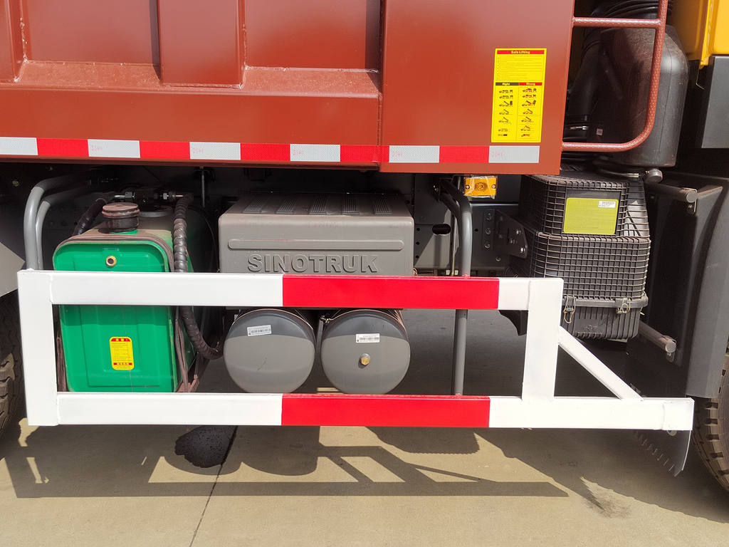 Ez a Howo építőipari dömper nagy szilárdságú acél létravázzal rendelkezik, amely erős torziós ellenállást és kiváló teherbírást biztosít, így alkalmassá teszi a göröngyös építési területek kezelésére. Erős emelőkapacitása és 45-60°-os raktérdőlési szöge gyors és alapos kirakodást biztosít. A raktér akár 30 tonnát is elbír, és opcionálisan vastagított acéllemezekkel vagy korróziógátló bevonatokkal is felszerelhető a hosszabb élettartam érdekében. A hátsó ajtó automatikus zárral rendelkezik, amely megakadályozza a véletlen kinyílást szállítás közben, növelve a biztonságot.