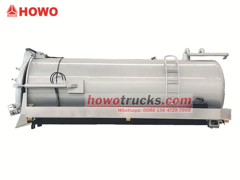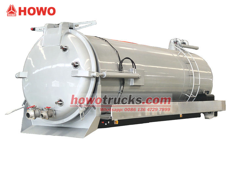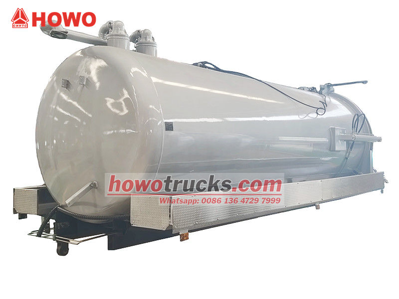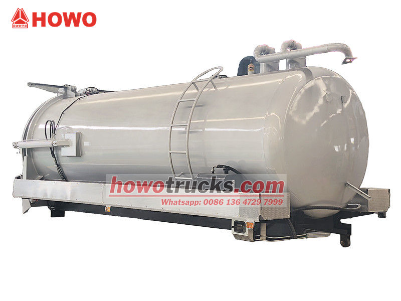 A 12 köbcentis szennyvíztartály felső teste Egy magos vákuumszivattyú egy olaj-gáz szeparátorral párosítva gyorsan negatív nyomást hoz létre a tartályban. Egy kopásálló szívótömlőn keresztül hatékonyan szívja ki az iszapot, a szennyvizet, a fekáliát és más viszkózus hulladékot.