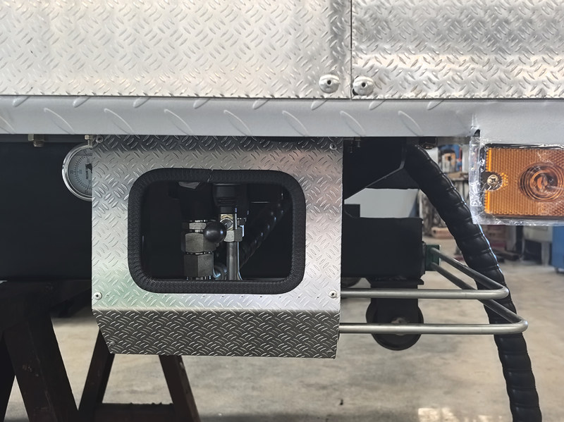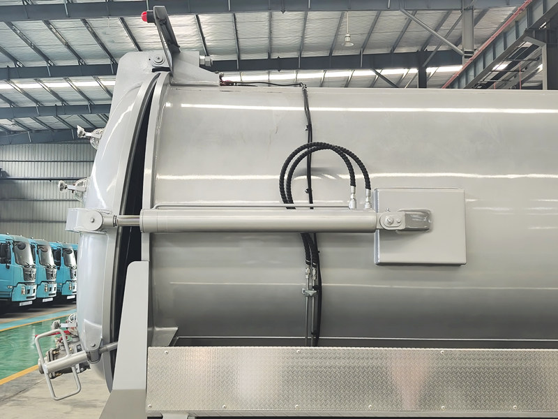 ●A jármű hidraulikus ürítőrendszerrel van felszerelve, amely a teljes tartályt megdönti az alapos ürítés és öblítés érdekében, csökkentve a maradványokat és tisztán tartva a belső teret. A teljes folyamat lezárt, megakadályozva a másodlagos szennyeződést és a szagok terjedését, biztosítva a tiszta és higiénikus munkakörnyezetet.