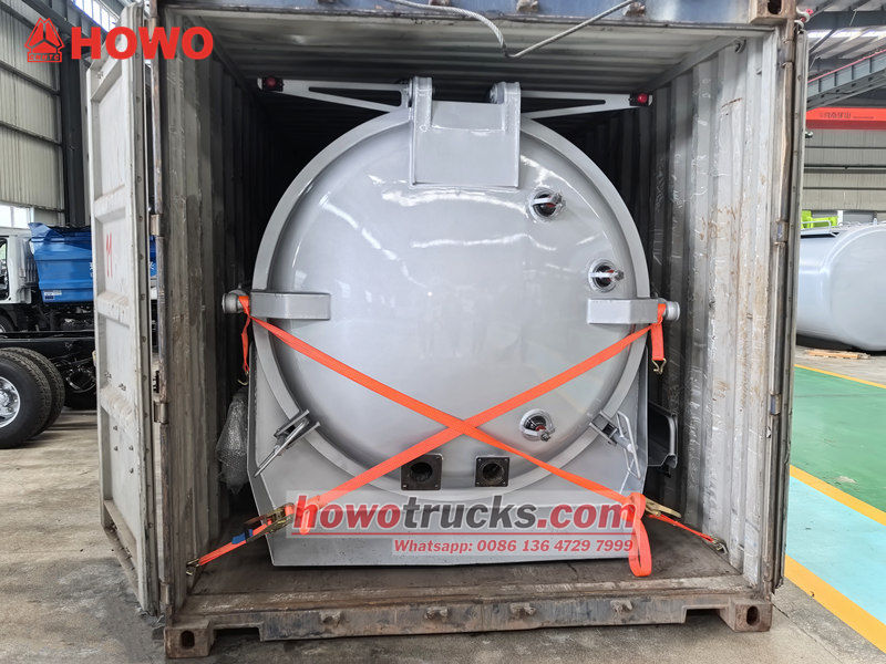 Optional MORO or Jurop pumpA nigériai 12 köbméteres szennyvíztartály felső része egy lezárt tartályból, vákuumos elszívórendszerből, vezérlőkből és biztonsági tartozékokból áll. A tartálytest nagy szilárdságú szénacélból készült és hengeres. Belső részét korróziógátló kezeléssel kezelték, amely nyomásálló tömítést biztosít és megakadályozza a szivárgást.