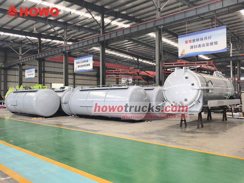 A Nigeria 12 köbméteres szennyvíztartály felső része egy lezárt tartályból, vákuumszivattyúból, szívócsőből, folyadékszintjelzőből és biztonsági szeleprendszerből áll, amely erős szívóerőt és hatékony szennyvízeltávolítást biztosít. Ez a készülék a vákuumos negatív nyomás elvét alkalmazza a szennyvíztartály hulladékának gyors beszívására a tartályba, megakadályozva a másodlagos szennyeződést. Stabil szerkezete és egyszerű kezelhetősége széles körben alkalmassá teszi szennyvíztartályok, szennyvízkutak, ülepítő tartályok és más helyek tisztítására és szállítására.